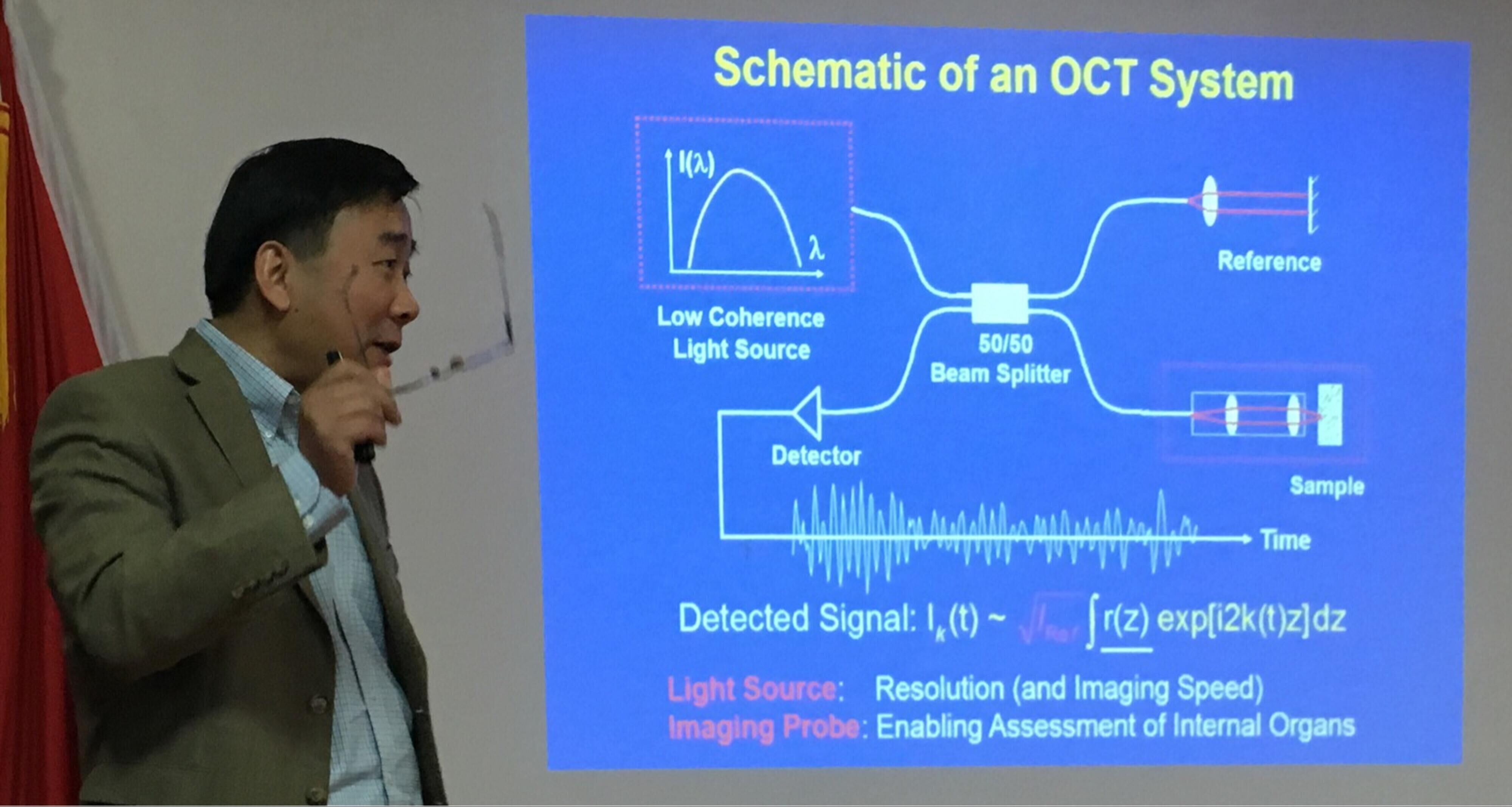 会议上,李教授生动详细的做了OCT(弱相干光断层扫描)和Two-photon(双光子)内容的报告,就他近年来研究的OCT技术,原位组织的非接触式内窥显微成像技术等的最新进展与大连理工师生进行了深入的学术交流,师生们踊跃地与李教授一行进行了互动,在交流过程中受到李教授的诸多启发,殷切期望日后与李教授有更多交流。