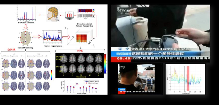 本项目融合多专业多学科技术知识,结合水凝胶电极材料设计、脑电信号采集模拟前端设计、脑电信号分析处理技术、基于人脸关键点采集的视觉检测技术等,搭建起便携式精神疲劳检测系统;并将系统与车辆结合,检测结果直传车辆自动驾驶系统,实现了驾驶员精神状态实时检测的现实应用,为疲劳驾驶等场景提供安全有效的人机共驾干预措施。本项目在真实驾驶中的驾驶员精神状态检测中也得到了应用,曾在央视《新闻直播间》、《朝闻天下》节目中滚动播出,引起工信部、公安部、教育部和社会各群体的广泛关注。项目成果在北部五省(区)高新技术成果联展暨辽宁第二届高新技术成果展展出并成为现场热点。本项目已发表论文一篇,提出专利申报两项。