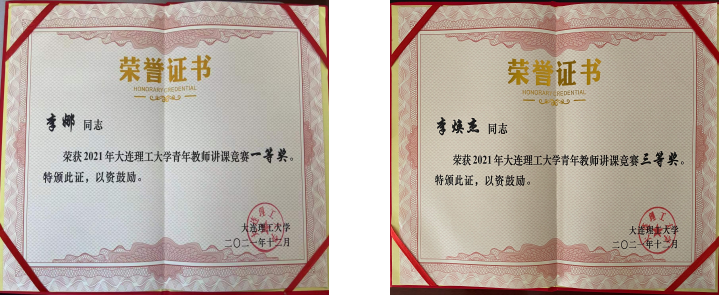 在教师教学发展中心与校工会组织的2021年大连理工大学青年教师讲课竞赛中,全校24个学部(学院)的68位教师晋级决赛。我院教师李娜、李焕杰通过积极备战,以饱满的热情、锐意进取的精神风貌,在决赛中充分展示出了自己的教学能力和专业水平,受到了专家评委的肯定,经过激烈比拼后分别荣获一等奖、三等奖。